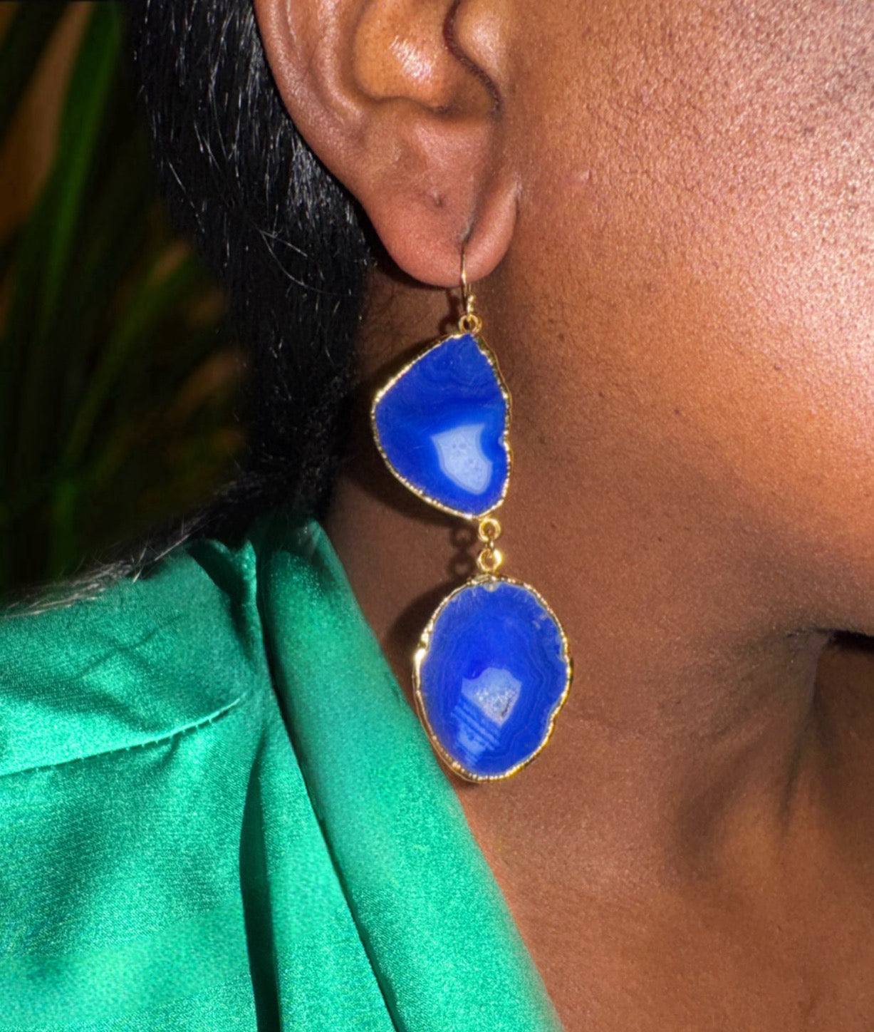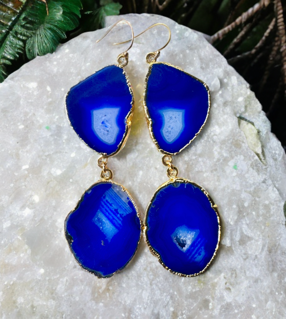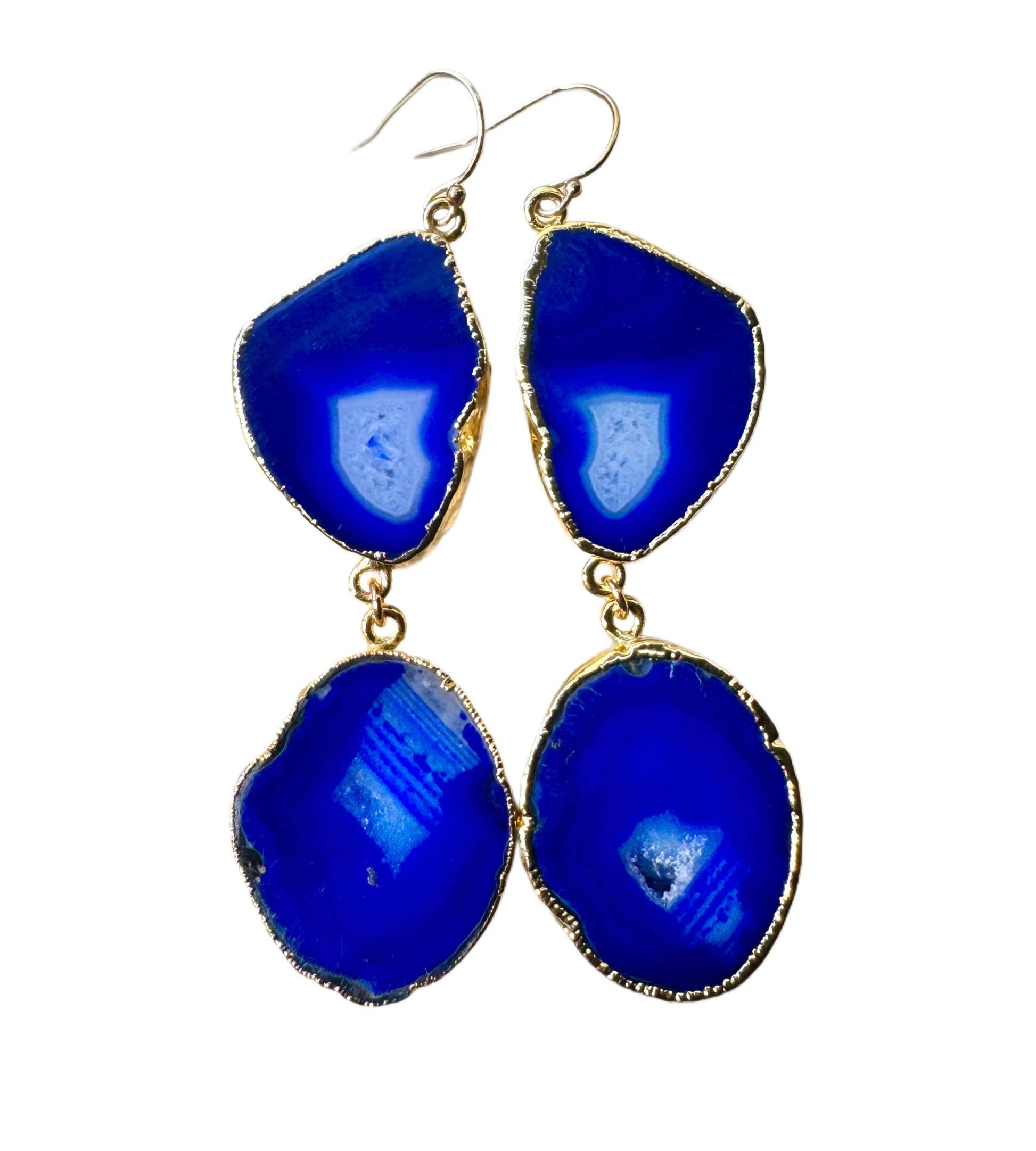 These deep blue geode earrings bring a splash of vibrant color to any outfit. Their smooth texture and sleek design make them a standout choose that is suitable for every season.