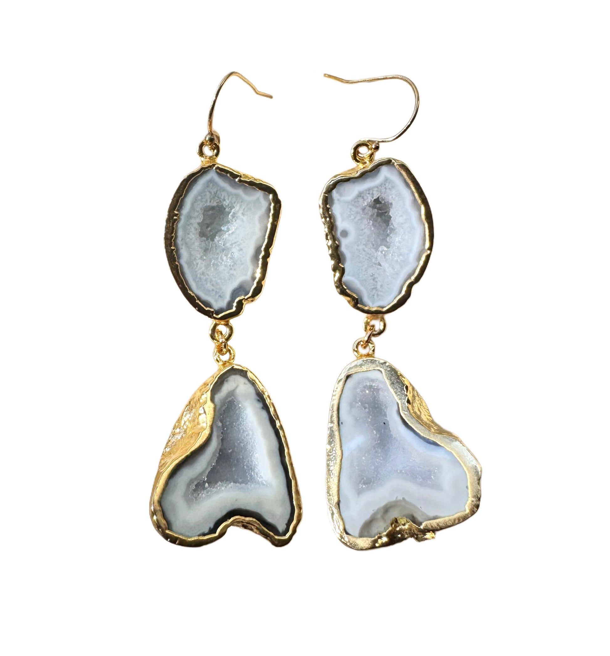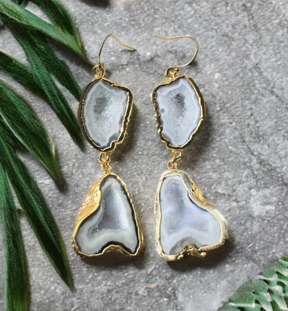Elegant in their simplicity, these white geode earrings offer a calm, organic aesthetic. Their natural form and soft tones make them a must-have for anyone who loves effortless and versatile bohemian-chic.